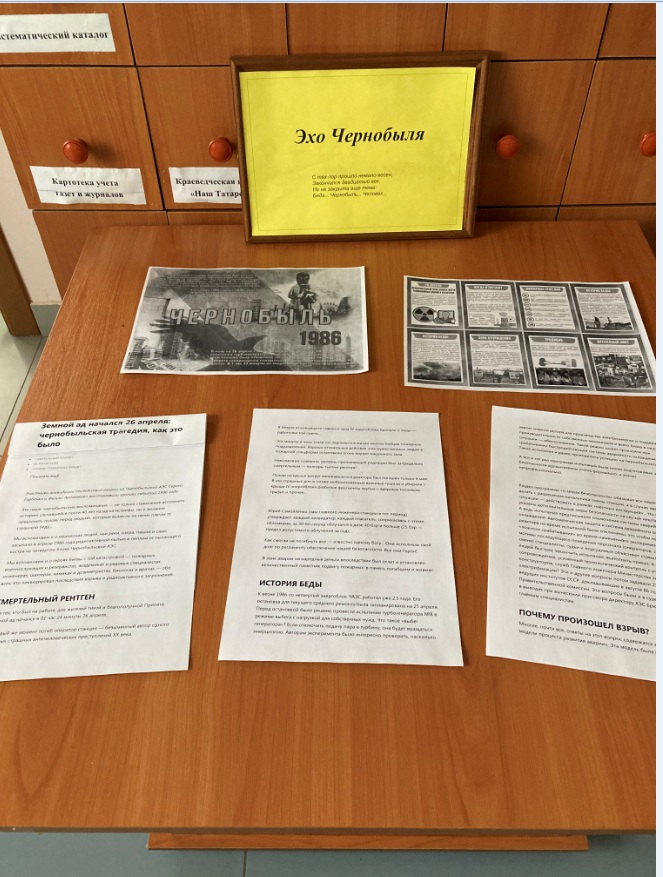 26 апреля весь мир отмечает Международный День памяти жертв радиационных аварий и катастроф. 40 лет назад на Чернобыльской АЭС произошла самая масштабная техногенная катастрофа XX века. К этой дате в Больше-Битаманской сельской библиотеке оформлена тематическая выставка, где представлены материалы о событиях техногенной катастрофы, воспоминания свидетелей и участников ликвидации Чернобыльской аварии, взгляды ученых на саму аварию и ее последствия. Читатели, посетившие выставку, узнают о масштабах трагедии, о людях, находившихся в этой зоне.
