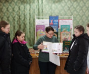 “Минем телем -Дуслык теле”китап күргәзмәсе. Анда Рус теле тарихы һәм сөйләм культурасы буенча басмалар, төрле сүзлекләр, белешмәләр, энциклопедияләр, туган сүзгә багышланган брошюралар тәкъдим ителгән. Укучылар өчен фольклор әдәбияты: мәкальләр, әйтемнәр, табышмаклар, әкиятләр белән ...