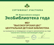 2025 елның 9 гыйнварында “Ел Экобиблиотекасы” VIII Бөтенроссия конкурсында җиңүче китапханәләр билгеле булды. Конкурс Россия китапханәләрендә әйләнә-тирә мохитне өйрәнүгә, торгызуга һәм саклауга юнәлдерелгән табигатьне саклау һәм экология эшчәнлеген үстерүне стимуллаштыру өчен ...