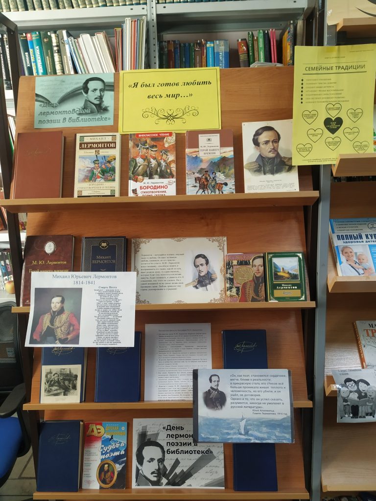 Биектау авыл китапханәсе укучылары өчен шагыйрьнең тууына 210 ел тулуга багышланган «М.Ю. Лермонтовның китап битләре» дигән интерактив уен үткәрде. Уен барышында балалар бөек язучының тормышы һәм иҗаты турында белемнәрен күрсәттеләр, аның әсәрләреннән өзекләр укыдылар, викторина сорауларына җавап бирделәр. Китапханә укучылары М.Ю. Лермонтовның лирикасы романтик һәм матур булуын билгеләп үттеләр. Чарага «Мин бөтен дөньяны яратырга әзер идем» исемле китап күргәзмәсе оештырылды.Күргәзмәдә авторның иҗаты һәм аның тормыш юлыннан кызыклы фактлар урын алды.