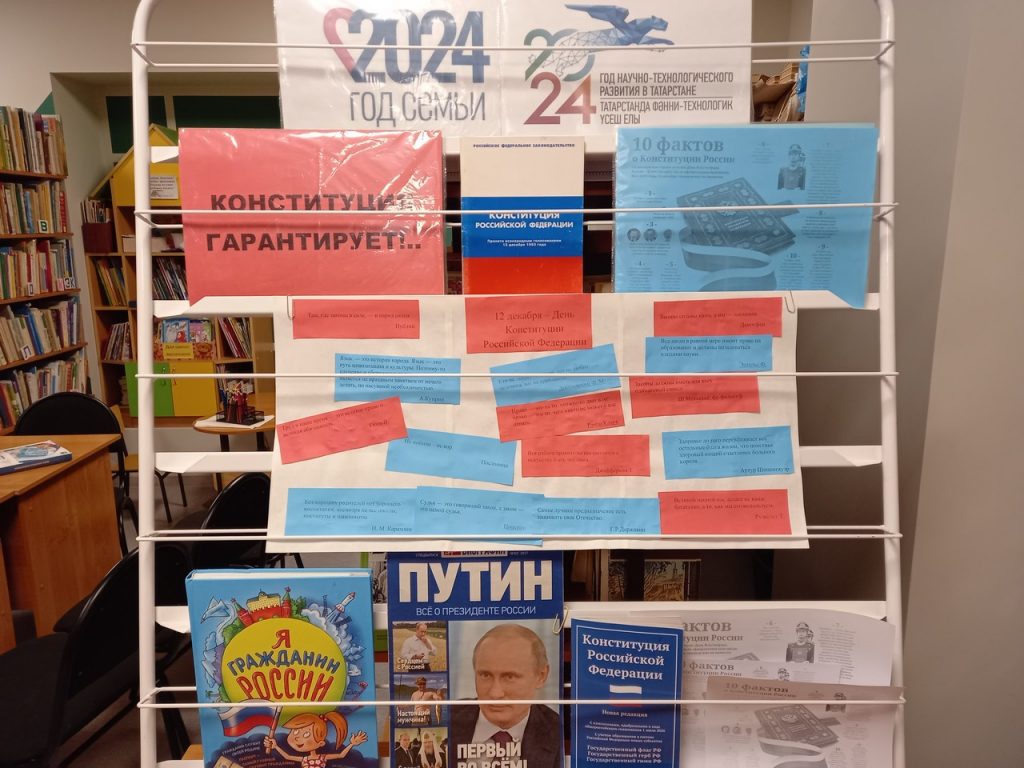 12 декабрь – РФ Конституциясе көне. Яшь буынга хокукый тәрбия бирү кысаларында Бөреле җәнлек совхозының авыл китапханәсендә укучылар өчен танып белү чарасы – китапханә квилты үткәрелде. Китапханәче балаларга илнең төп законы, аның тарихы һәм үсеше турында сөйләде. Нәрсә ул – Конституция, ул нәрсә гарантияли? Әлеге сорауларга җавапларны чарада катнашучылар алды, алар үз хокукларын һәм бурычларын белделәр. Алган белемнәрне ныгыту өчен китапханә квилты рәвешендә рәсмиләштерелде. Балалар бөек кешеләрнең безгә конституция гарантияли торган төшенчәләр турындагы сүзләреннән һәм цитаталарыннан плакат ясадылар.
