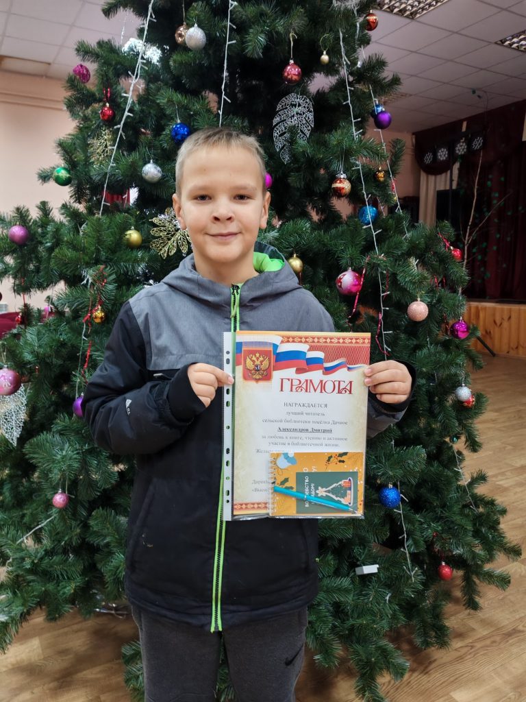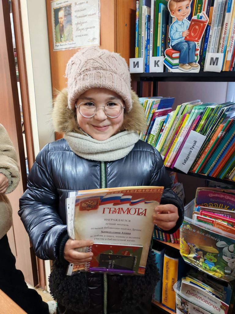 Ел ахырына якынлаша, димәк, нәтиҗәләр ясарга вакыт. Традиция буенча декабрь азагында Дачное авыл китапханәсе актив укучыларны грамота һәм истәлекле призлар белән бүләкли. Алар төрле яшьтәге, төрле эшчәнлек, кызыксыну һәм кызыксыну буенча төрле кешеләр. Әмма аларны берләштергән әйбер – китапка һәм укуга мәхәббәт, китапханәгә тугрылык. Китапханәче укучыларны якынлашып килүче яңа ел белән котлады һәм алга таба да китапханә тормышында актив катнашуларын теләде.