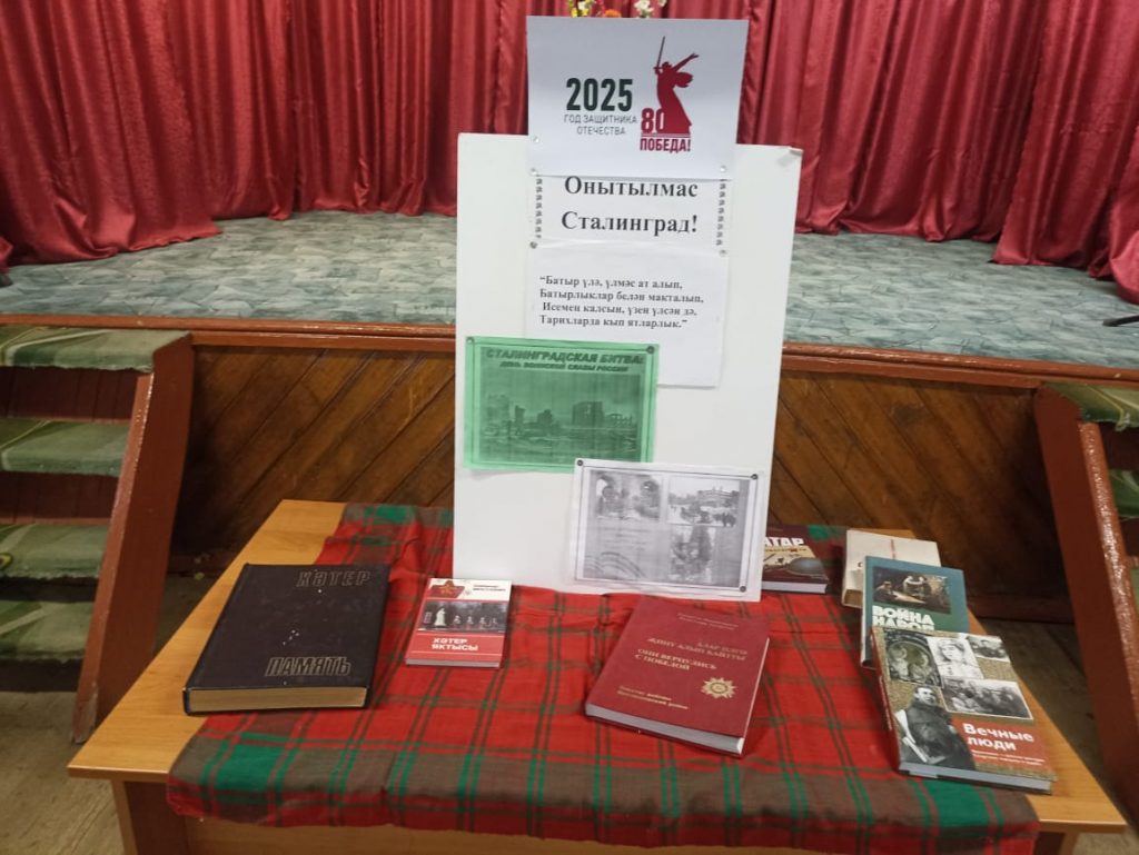 Ел саен 2 февральдә хәрби дан көненең берсе – Сталинград сугышында Җиңү көне билгеләп үтелә. Шул уңайдан Суыксу авыл китапханәсендә «Онытылмас Сталинград» 4 нче февраль  көнне  китапханәдә китап укучы балалар белән  «Онытылмас Сталинград»  исемле әңгәмә үткәрелде.  Балаларга  Сталинград янындагы аянычлы сугыш турында сөйләп үтте. Л.Хәмидуллинның «Җиңү җиңел бирелмәде» дигән китабыннан бу сугышны чагылдырган рәсемнәрне карап үттеләр, якташларыбызның күрсәткән батырлыклары белән танышып үттеләр. Шулай ук китапханәдә «Герой Сталинград» дигән  китап күргәзмәсе дә оештырылды.