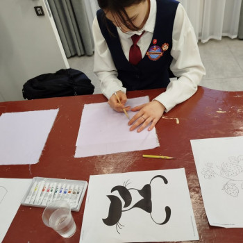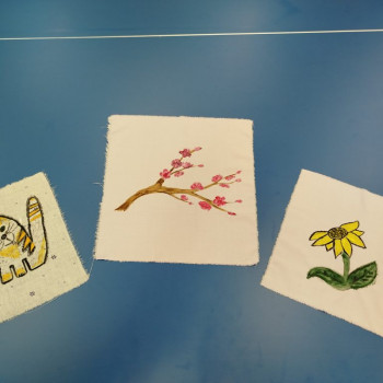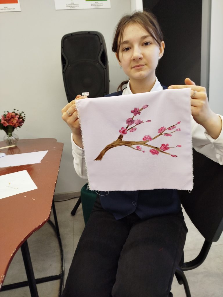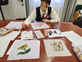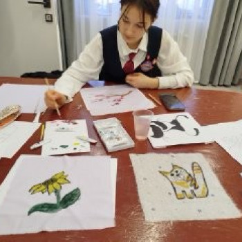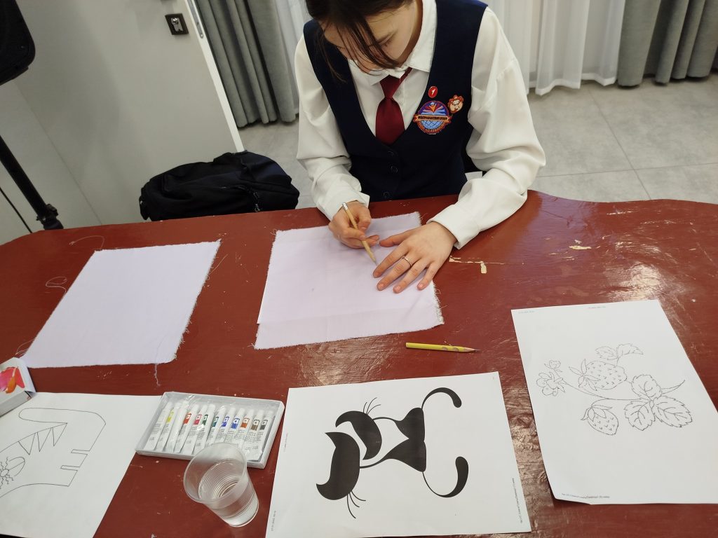 Әлеге фактлар белән китапханәдән көнләшүче укучыларны таныштырды, шулай ук тукымага рәсем ясау теориясе белән таныштырды: нәрсәдә рәсем ясарга, нинди буяулар белән, тукымага рәсем ясау техникасы нинди була. Берничә трафарет тәкъдим ителде. Һәркем ышаганын сайлый алды