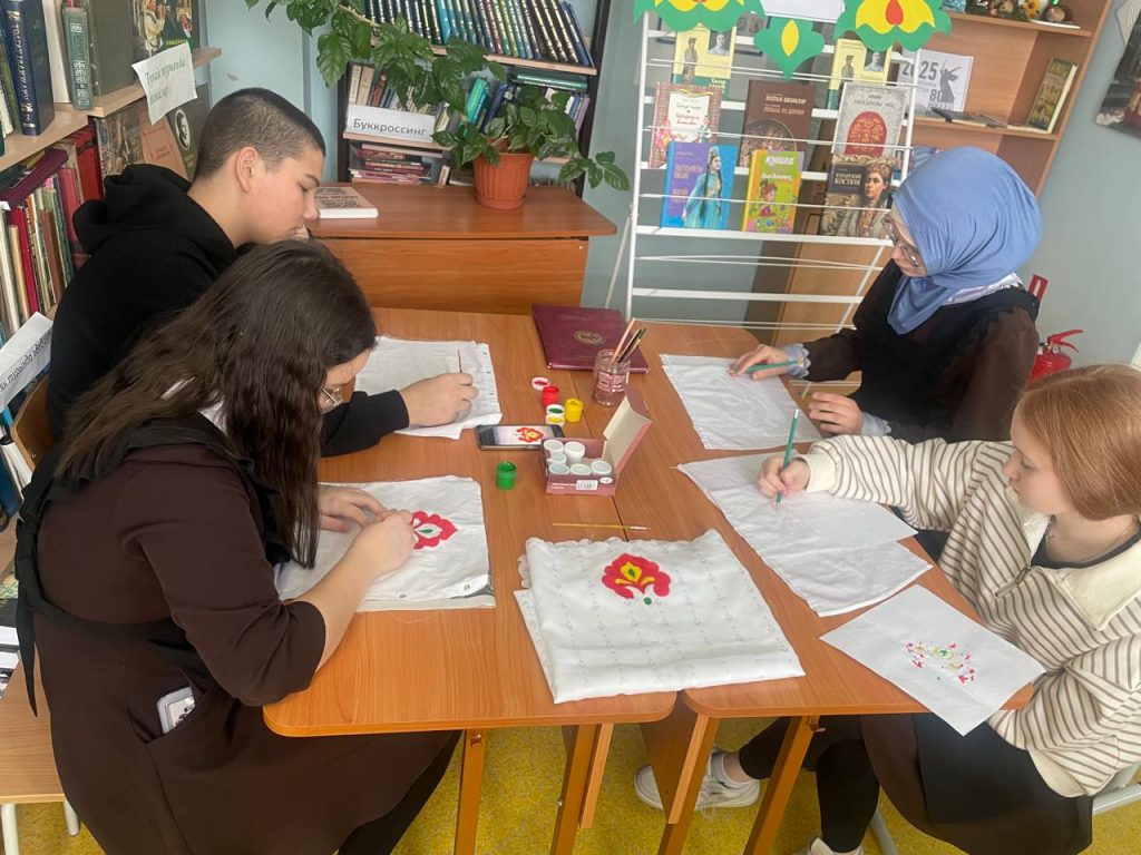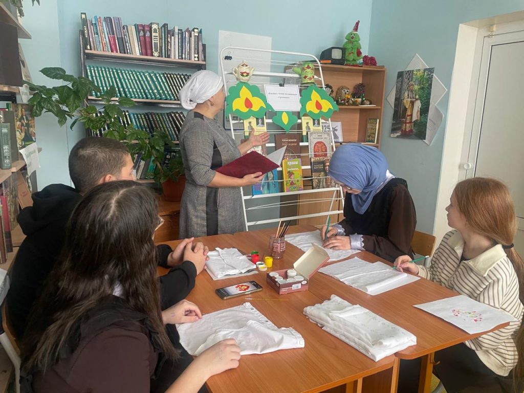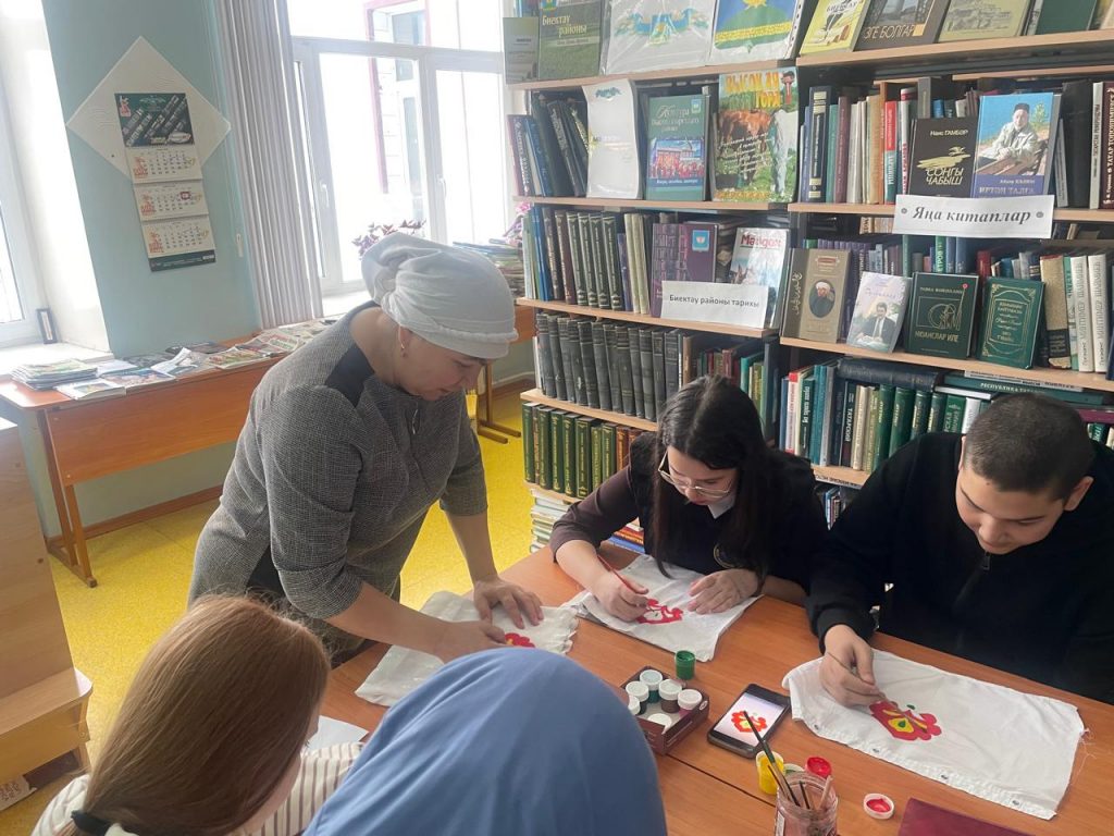 Сая авыл китапханәсендә Пушкин картасы программасы кысаларында «Китап битләренә тукыма бизәге» дигән мастер-класс үткәрелде. Хәзерге вакытта тукымага бизәк төшерү хоббиның популяр төре. Чара башында китапханәче укучыларны тукымага рәсем ясау теориясе белән таныштырып үтте нәрсәдә рәсем ясарга, нинди буяулар белән, тукымага рәсем ясау техникасы нинди була. Берничә трафарет тәкъдим ителде. Һәркем үзләренә ошаган трафаретны сайлап, карандаш белән рәсем ясый алдылар.