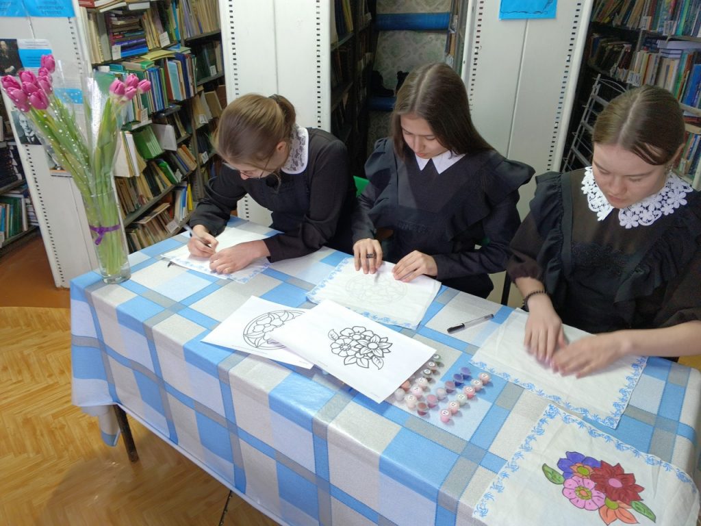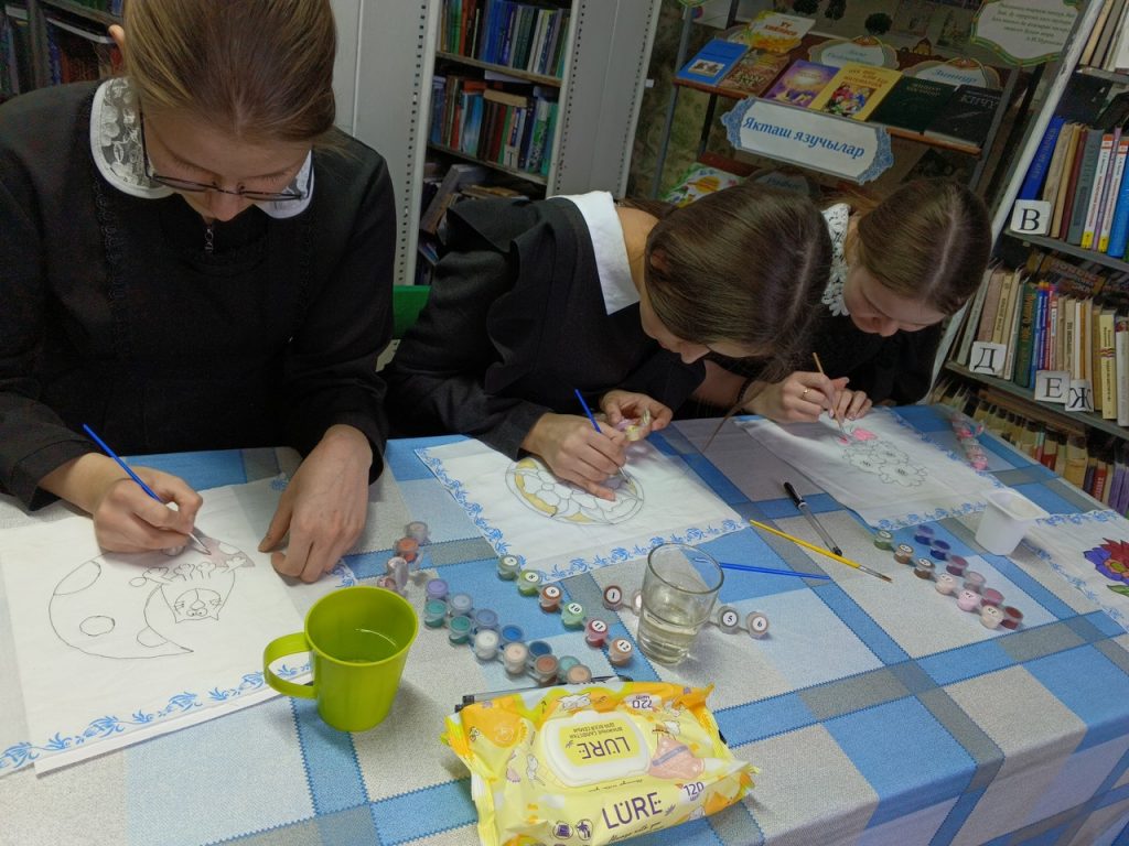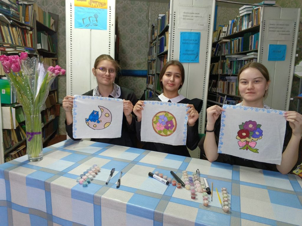 Каенлык авылы китапханәсендә яшь укучылар өчен Пушкин картасы проекты кысаларында тукымага рәсем ясау буенча кызыклы чара үткәрелде. Тукымага бизәк төшерүдә гаять катлаулы бернәрсә дә юк, иң мөһиме – төгәллек, сыйфатлы материаллар һәм кайбер кагыйдәләрне үтәү. Чара башында китапханәче тукымаларга кулдан сәнгати бизәк төшерүнең, текстиль әйберләрне бизәү төре буларак, бик борынгы заманнарга барып тоташуын сөйләде. Аннары һәркем үзләренә ошаган трафаретны сайлады һәм китапханәче ярдәмендә язулар һәм өстәмә элементлар белән төрлеләндерде, ә аннары тукымага күчерделәр.
