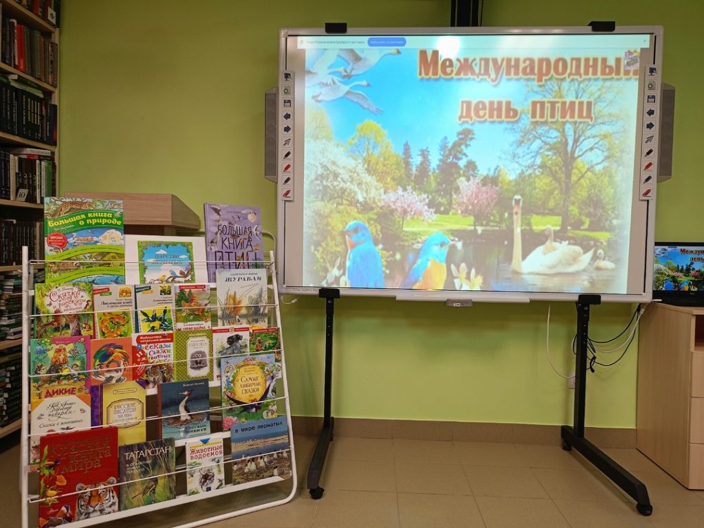 Яз килүе турында, календарьга яки һава торышына караганда күпкә нәтиҗәлерәк итеп безгә кошлар искәртә. Без аларның ягымлы сайрауларын ишетеп төшенәбез – димәк дөнья, ниһаять, кышкы йокыдан уяна. Нәкъ менә яз көне Бөтендөнья Халыкара кошлар көне билгеләп үтелә. Кошлар – без күнеккән экосистеманың мөһим өлеше булып торалар, аларның юкка чыгуы чын мәгънәсендә табигый һәлакәткә китерергә мөмкин. Шуңа күрә бу көнгә багышланган барлык бәйрәм чаралары кеше тормышында канатлы дусларның мөһимлеген искә төшерергә тиеш. Китапханәдә укучылар өчен “Кошлар патшалыгы” дип исемләнгән китап күргәзмәсе оештырылды. Биредә фәнни китаплар да, кошлар турында язучыларның матур әдәбият әсәрләре дә куелды. Шулай ук укучылар “Халыкара кошлар көне” дигән видеоролик карап, кошлар тормышы турында бик күп мәгълүмат ала алдылар.