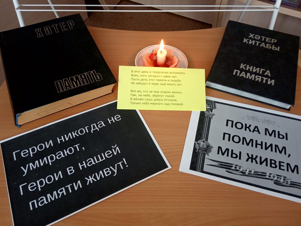 1941 елның 22 июне – бер көнне миллионлаган гаиләнең киләчәккә булган өмете, тулы бер буынның язмышы җимерелгән көн. Бу көн Ватаныбыз тарихына канкойгыч һәм авыр сугыш башланган көн булып кереп калды. Коркачык авылы китапханәсе бу көнгә багышлап хәтер сәгате үткәрде. Китапханәче сугышның беренче көннәре, совет солдатларының батырлыгы турында сөйләде. Бу көнне илебезне яклап һәлак булганнар, фашистлар тарафыннан газапланган, ачлыктан һәм салкыннан һәлак булганнар турында, өлкәннәр белән беррәттән фашистларга каршы көрәшкән, батырлык күрсәткән балалар турында искә алынды.Чарада катнашучылар «Хәтер шәме» акциясенә кушылдылар.Теләге булган һәркем илебез тынычлыгы өчен үз-үзен аямаганнарга хөрмәт йөзеннән һәйкәл янында шәм кабызып, аларны искә алды.
