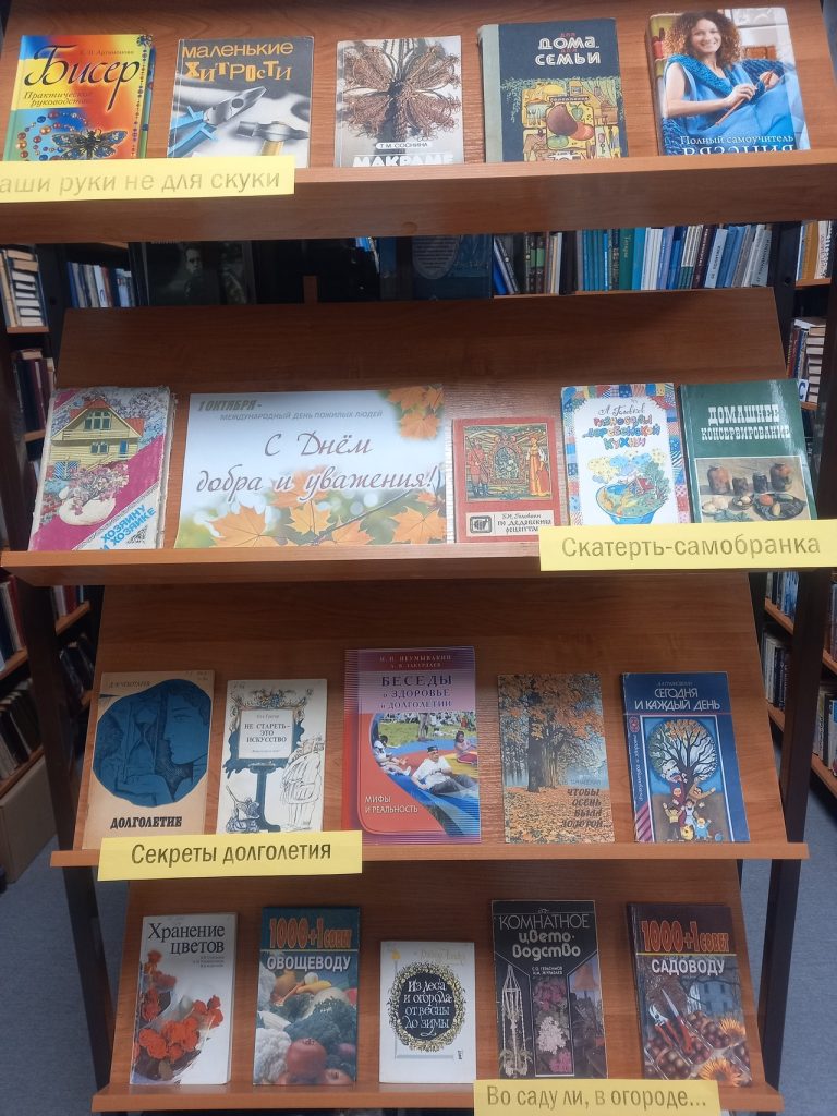 1 октябрь көнне Халыкара өлкәннәр көне билгеләп үтелә. Бөреле җәнлек совхозының авыл китапханәсендә өлкән буын укучылары өчен күргәзмә оештырылды. Аның өчен ял итү һәм мавыгу өчен басма материаллар тәкъдим ителде. Бу бакчачылык, кулинария, декоратив иҗат, тегү һәм бәйләү буенча китаплар. Бөреле мәдәният йортында китапханә белән берлектә өлкән яшьтәге кунаклар белән очрашу узды. Чара барышында «Черемухи цвет» дуэты башкаруында җырлар яңгырады, «Бабушка» шигырен Фокин Руслан укыды, Федоров Роман «Не обижайте пожилых людей…» шигыре белән чыгыш ясады, икесе дә күрү сәләте буенча инвалидлар һәм китапханәнең актив укучылары. Кичә җылы һәм тату түгәрәктә чәй эчү белән тәмамланды.