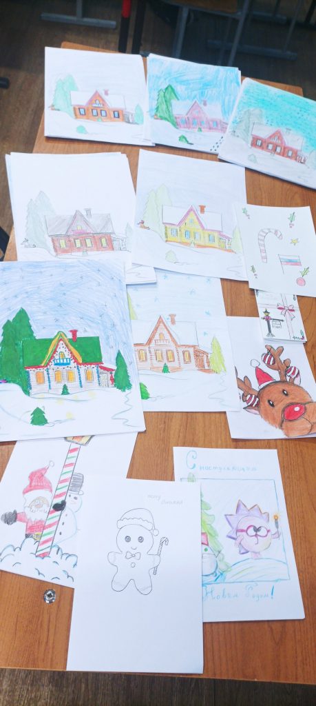 Декабрь ахырында 6 һәм 7 сыйныф укучылары китапханәче белән берлектә патриотик дәрес үткәрделәр, анда Махсус Хәрби Операциядә катнашучыларга Яңа ел хатлары яздылар. Балалар лаеклы яклаучыларыбызга ярдәм һәм рәхмәт сүзләре әйттеп башкардылар. Укучылар солдатларга чиста йөрәктән шигырьләр һәм котлаулар яздылар, туган йорт сурәте төшерелгән открыткаларны тырышып буядылар. Китапханәче Ватанны саклаучы ир-аталарга ярдәм итүнең мөһимлеге турында әңгәмә уздырды, туган як һәм Ватан турында шигырьләр укыды.