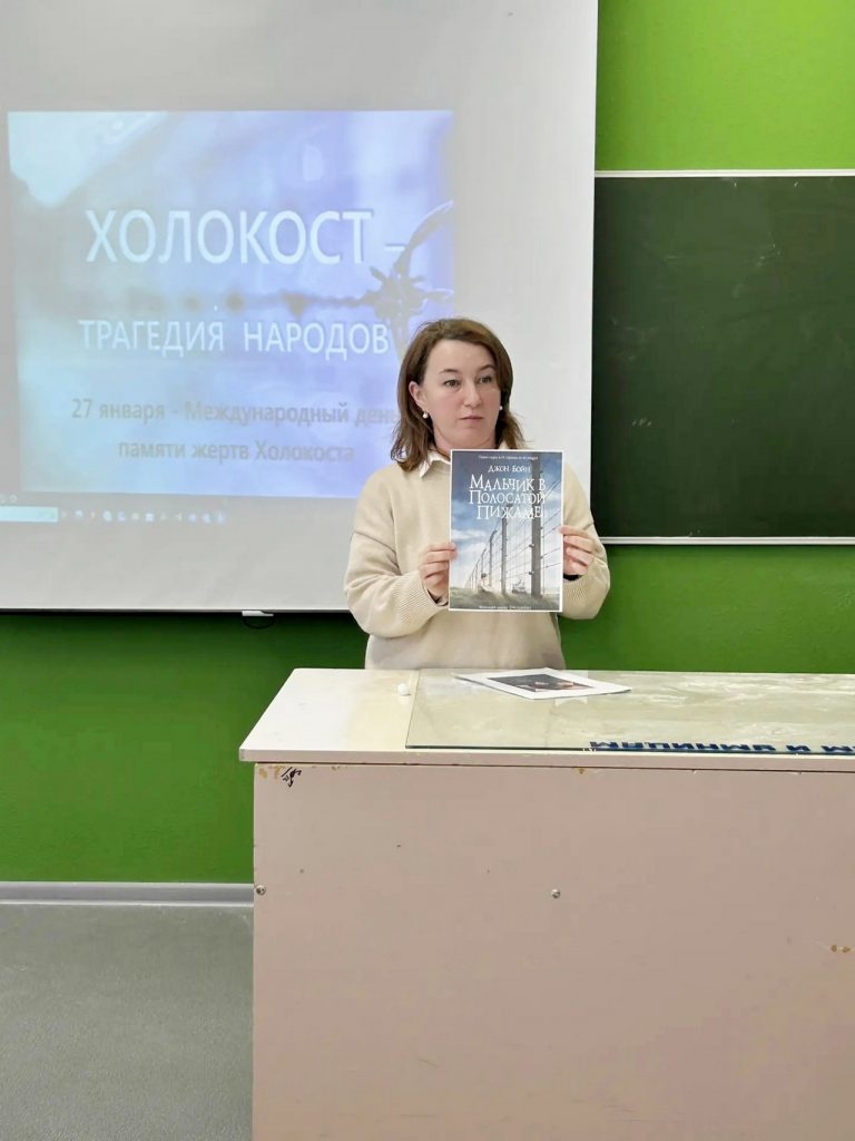 Дачное авыл китапханәсе Учхоз урта мәктәбе белән бергә Халыкара Холокост корбаннарын искә алу көненә багышланган әңгәмә үткәрде. Бу көн кешелекнең иң зур фаҗигаләренең берсе. Барлыгы алты миллионга якын яһүд үлде. Сөйләшү барышында китапханәче үлгәннәрне искә алырга, кеше тормышын кадерләргә һәм кеше хокукларын хөрмәт итәргә кирәклеге турында әйтелде. Шулай ук китапханәче әлеге тема буенча китаплар белән таныштырды, шул китаплардан филльм эзекләрен күрсәтте.