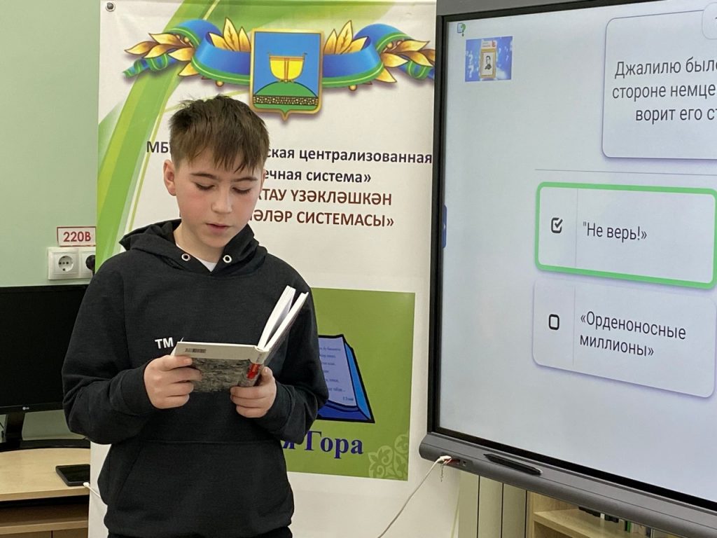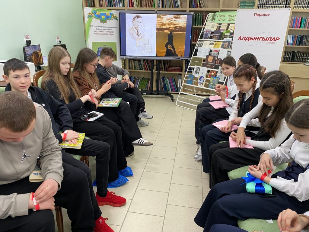 Үзәк китапханәгә районның төрле мәктәпләреннән «беренчеләр хәрәкәте» буенча лидерлар килде. . Китапханәчеләр яшүсмерләрне һәм яшьләрне китап укырга, тарих һәм туган якны өйрәнү белән кызыксынуларын формалаштыруга үз өлешләрен кертергә тырышалар. Бу юлы очрашуның темасы юбилей датасы- 2026 елда күренекле герой-шагыйрь Муса Җәлилнең тууына 120 тула. Балалар өчен китап күргәзмәсе әзерләнгән иде, алар аның белән чара барышында таныштылар. Шагыйрьнең тормышы һәм иҗаты турындагы Презентация чарада катнашучыларда онытылмас тәэсир калдырды, чөнки бу кешегә кыска, ләкин якты, авырлыклар һәм кыенлыклар белән тулы гомер яшәргә насыйп булды. Презентацияне күрсәткәннән соң, чарада катнашучылар тематик викторинаның дөрес җавапларын сайладылар, бу исә тормыш юлы һәм Муса Җәлил әсәрләре турындагы белемнәрне ныгытуга ярдәм итте.