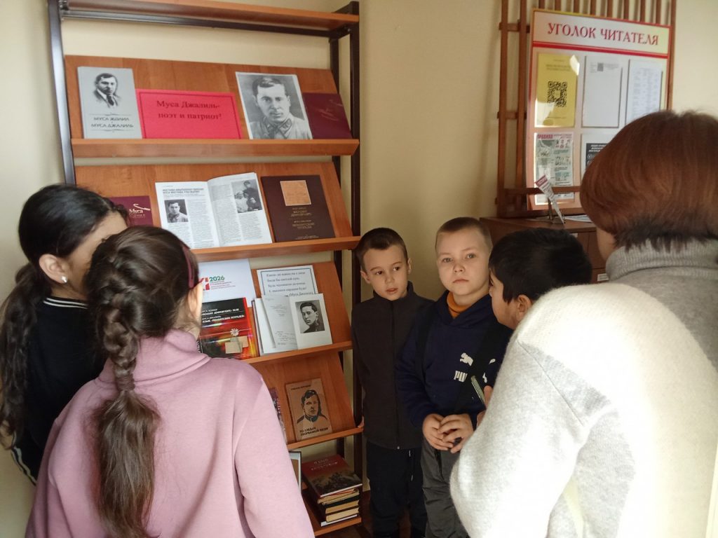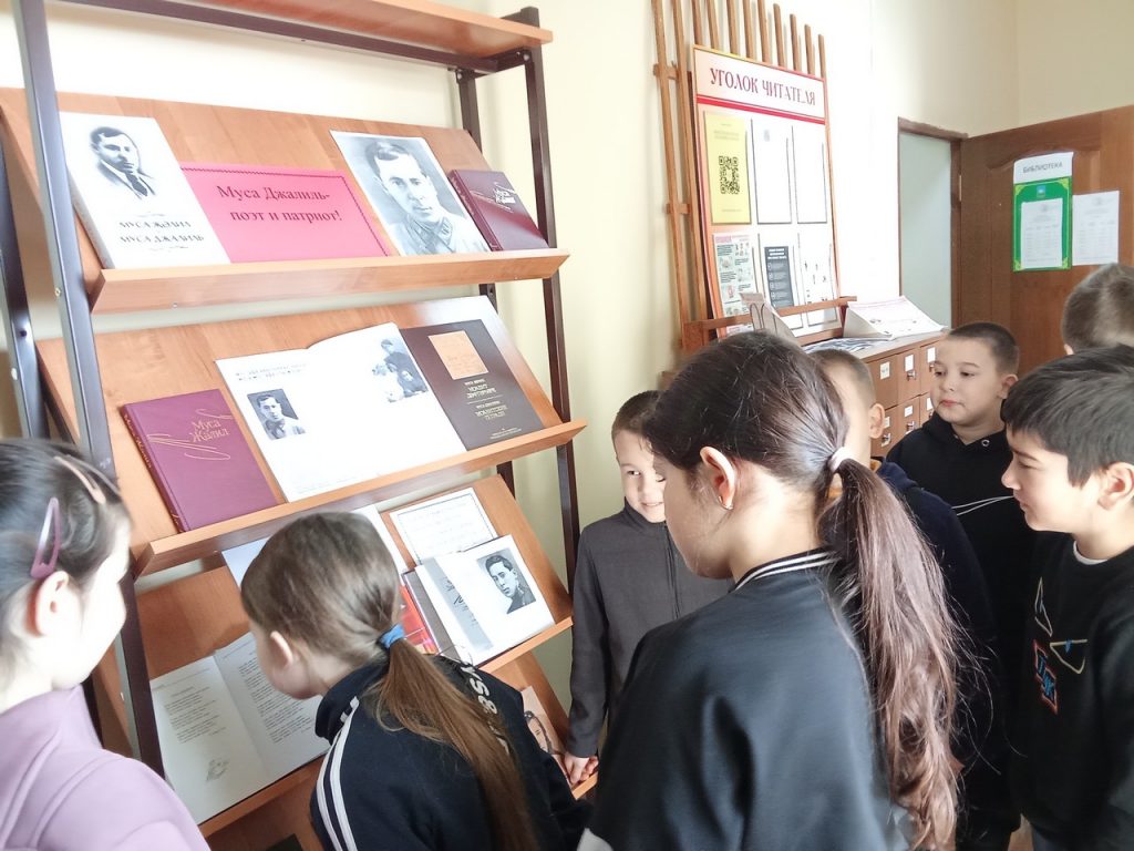 Китапханәдә исеме сыгылмас ихтыяр, Ватанга тугры мәхәббәт һәм Шигъри сүзнең үлемсезлеге символына әверелгән бөек шагыйрьгә багышланган тематик чара үткәрелде.Муса Җәлил-бөек татар шагыйре, Советлар Союзы Герое һәм Ленин премиясе лауреаты.Муса Җәлилнең шигырьләре дөньяның 60 тан артык телендә яңгырый, безне ныклыкка, мәхәббәткә һәм иманга өйрәтә.Аның тормышы-ул иҗат һәм патриотлык бергә кушылган юл.Китапханәче шагыйрьнең тормышы һәм иҗаты турында сөйләде, авторның шигърияте белән таныштырды.Әзерләнгән китап күргәзмәсенә күзәтү үткәрде.