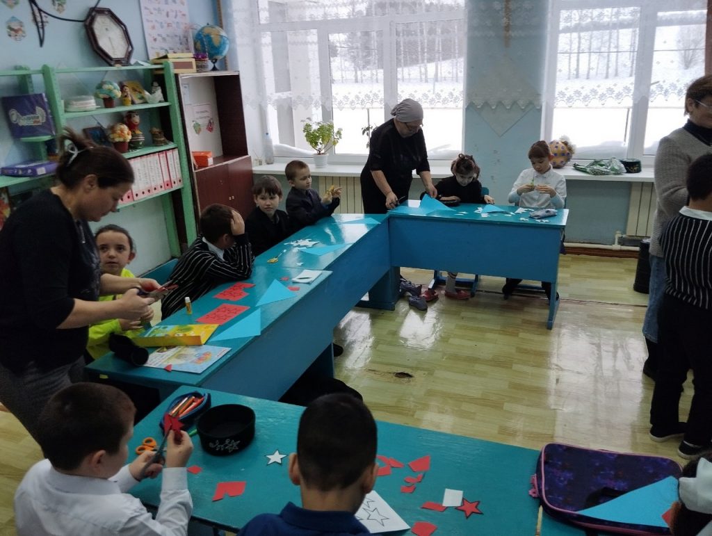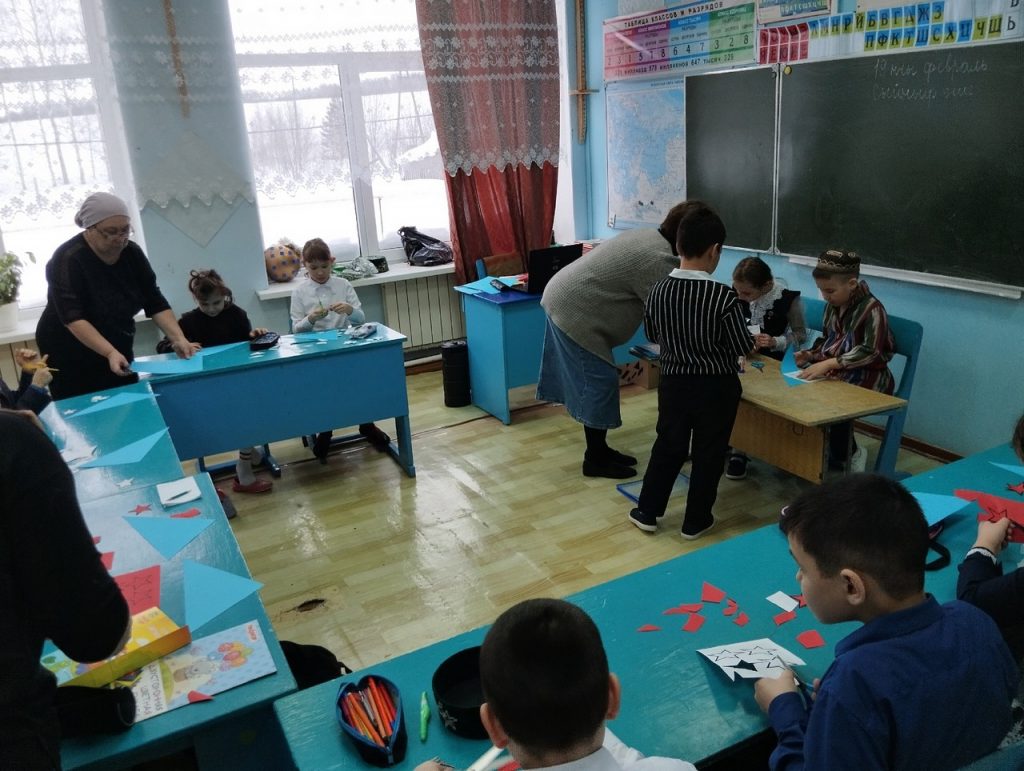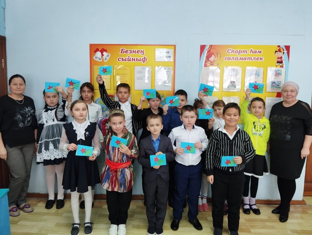 Әлеге бәйрәм алдыннан Айбаш авыл китапханәсендә башлангыч сыйныф укучылары белән открыткалар ясадык. Открыткалар ясау өчен укучыларга барлык кирәкле материаллар: төсле кәгазь, картон, кайчы, җилем бирелде. Мастер-класс ахырына һәр катнашучы әзер открытка белән кайтып китте, ул чын сәнгать әсәре булды.